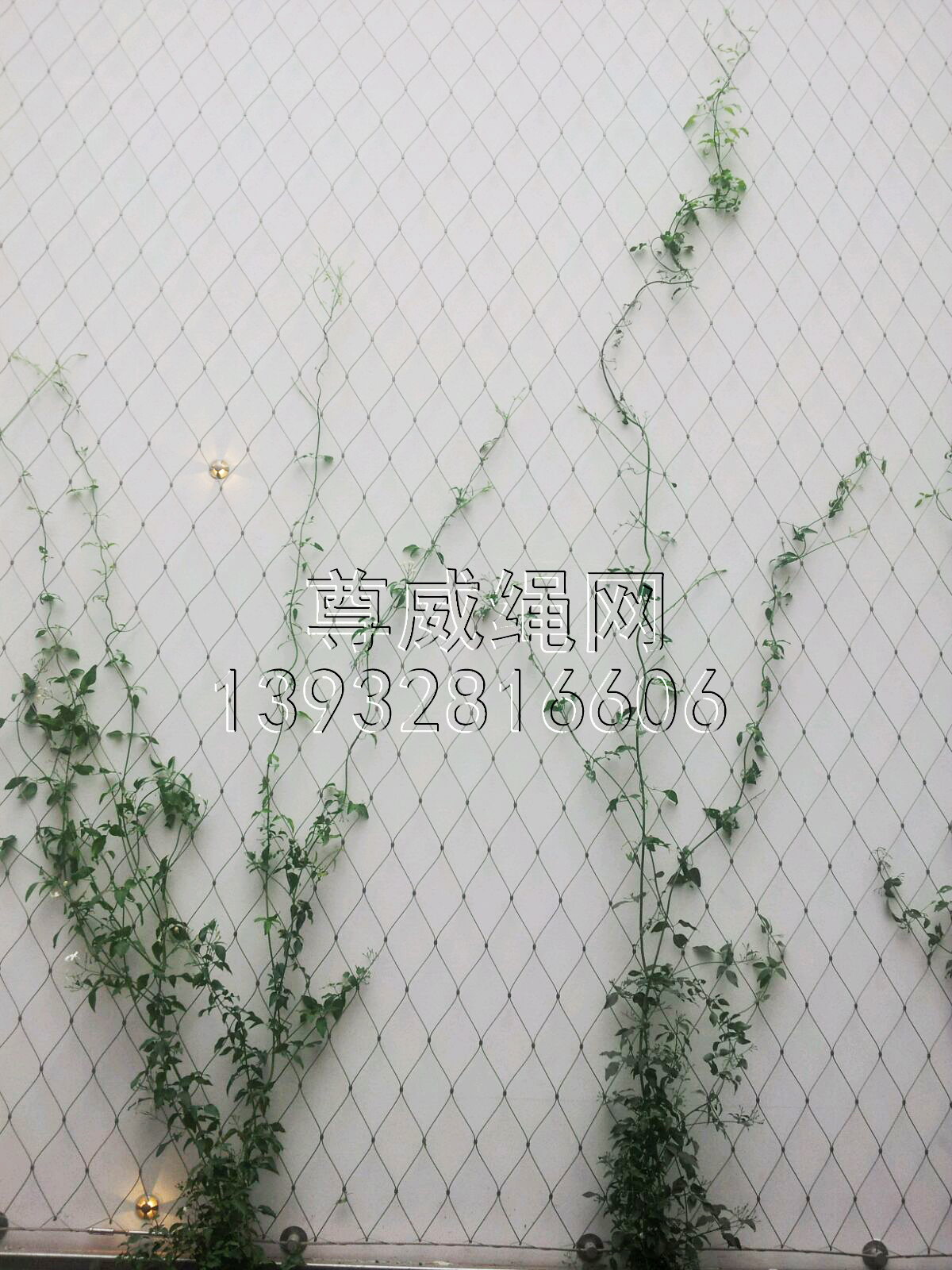 綠植攀爬網,又叫綠植攀爬鋼絲繩網、植物攀爬網、護山綠化攀爬網、綠色植物攀爬網、不銹鋼植物攀爬網、綠植攀爬網、綠植不銹鋼網、不銹鋼爬藤網、植物攀爬編織網是由不銹鋼繩上下絞織與鋼套擠壓而成,鋼絲繩直徑有1.2、1.6、2.0、2.5、3.2mm,鋼絲繩結構有7*7、7*19,材質有304、316、316L,其次我們還可以提供熱鍍鋅鋼絲繩網產品。