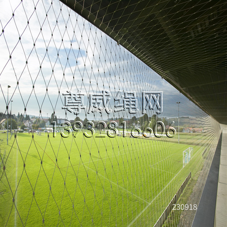 不銹鋼繩網體育場圍欄繩網又叫做足球場圍網,也是運動場圍網,主要在一些運動場所安裝使用,可以達到保護安全的作用,是專為體育場設計的新型防護產品,此品網體高、防攀爬能力強。體育場護欄網屬于場地圍網的一種。體育圍網具有色彩鮮亮、抗老化、耐腐蝕、規格齊全的特點。網面平整,強力張緊,不易受外力撞擊變形。其中現場施工安裝,產品最大特點是靈活性強,可根據現場要求隨時調整造型和尺寸。