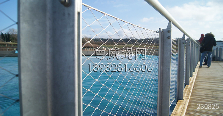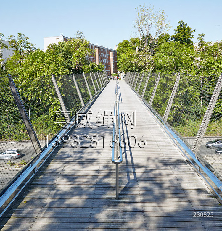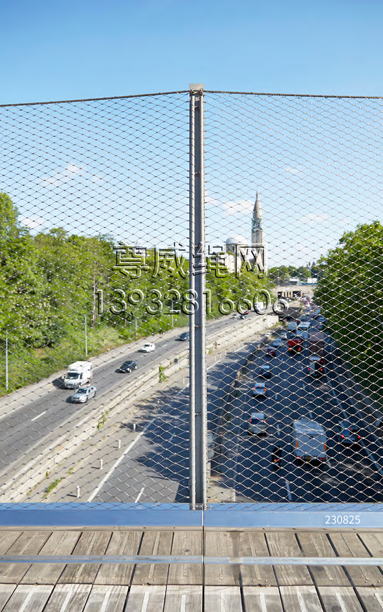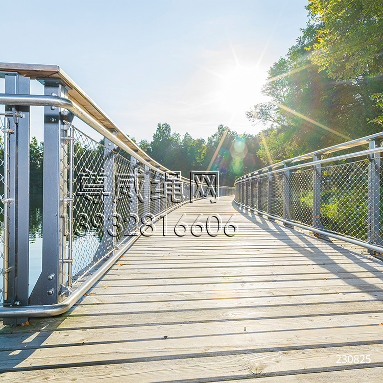 不銹鋼繩網(橋梁用網)(橋梁鋼絲繩網)(橋梁防護網)(橋梁護欄)是由不銹鋼繩上下絞織與鋼套擠壓而成,鋼絲繩直徑有1.0、1.2、1.5、1.6、2.0、2.4、2.5、3.0、3.2、4.0、5.0mm等,材質有304、04L、316、316L,其次我們還可以提供熱鍍鋅鋼絲繩網產品。鋼套材質主要采用不銹鋼套,其它還有鋁套、銅套、銅鍍錫套以供客戶選擇。產品應用于橋梁防護、安全、吊橋防護等。
