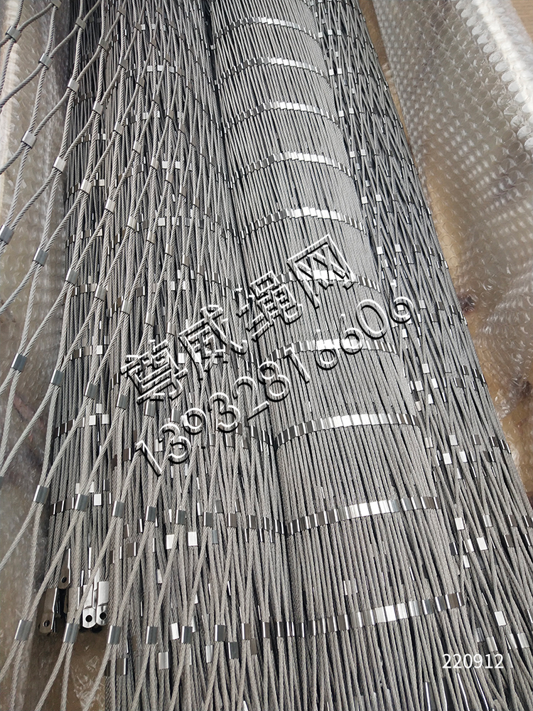 【安裝注意】:附件分布合理,注意承受力,網面展開角度合理,建議網孔展開角度為60-90度角。做到每個標準件和其它安裝附件,一定要安裝牢固。不銹鋼繩網連接一定要緊,不要有外露頭。