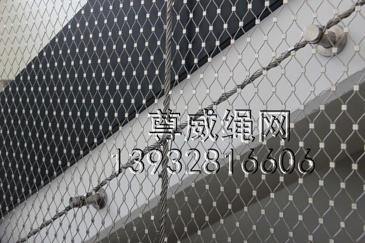 不銹鋼卡扣繩網具有以下特點及優點:輕量化、高強度、永不銹蝕、柔軟性好、耐疲勞、耐沖擊、破斷力大、整體結構堅固耐用,使用壽命在30年以上;貼近自然,綠色環保。可在任意氣候環境下使用,在陽光長久照射下不會變色;不銹鋼繩網的網面平整,透透性佳和所使用環境融為一體,外觀豪華、樣式新穎,獨具特色,本身就是一大景觀;彈性好,緩沖力強。特別是在動物園籠舍使用中,經的起動物們的撞擊,而且繩網和動物都不會受到傷害。